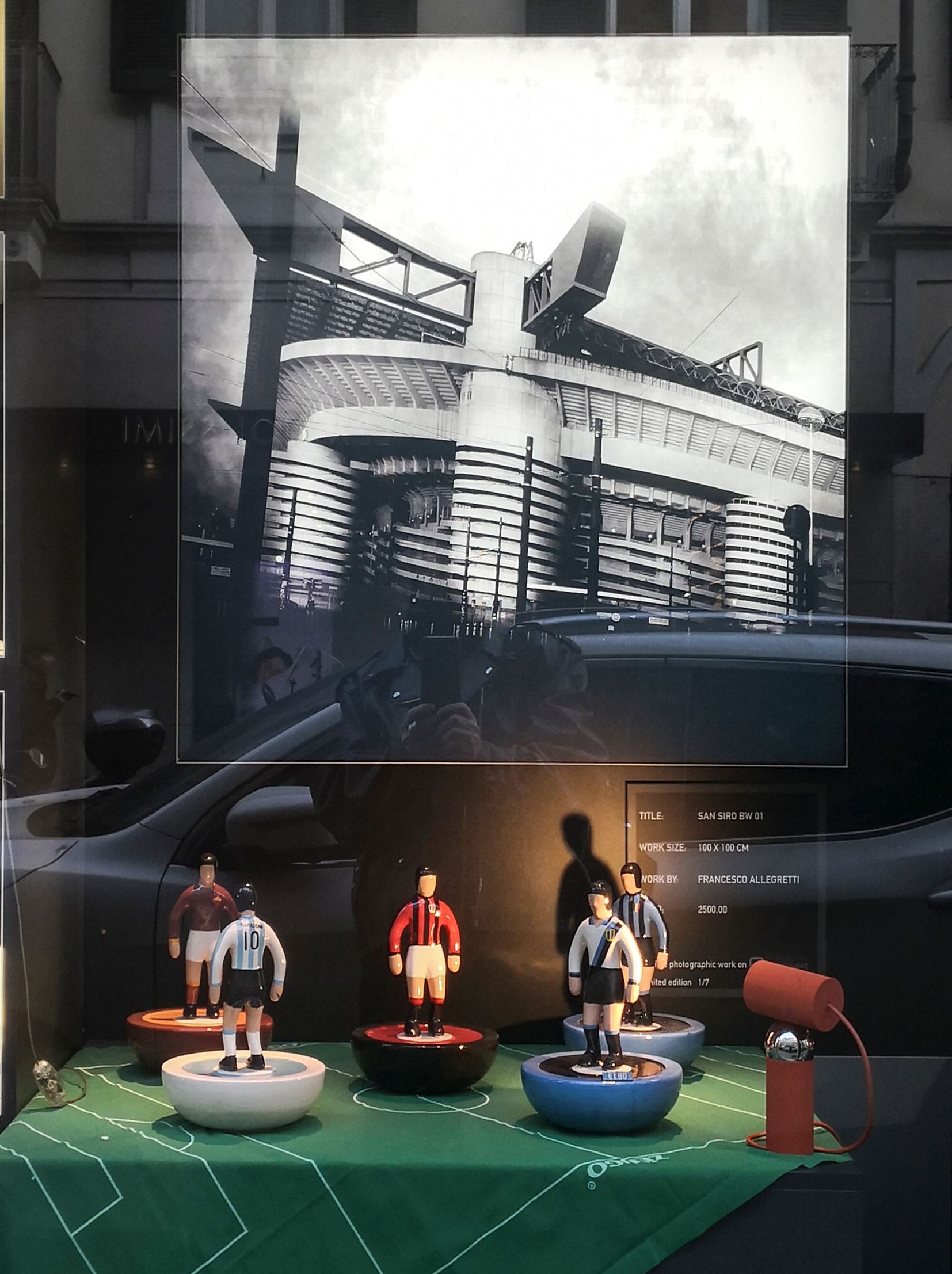 Per celebrare il lancio del progetto con Francesco Allegretti, Black Out Luce e Design presenta una vetrina esclusiva che unisce fotografia, luce e design in un omaggio all’iconico Stadio di San Siro e al mondo del calcio.